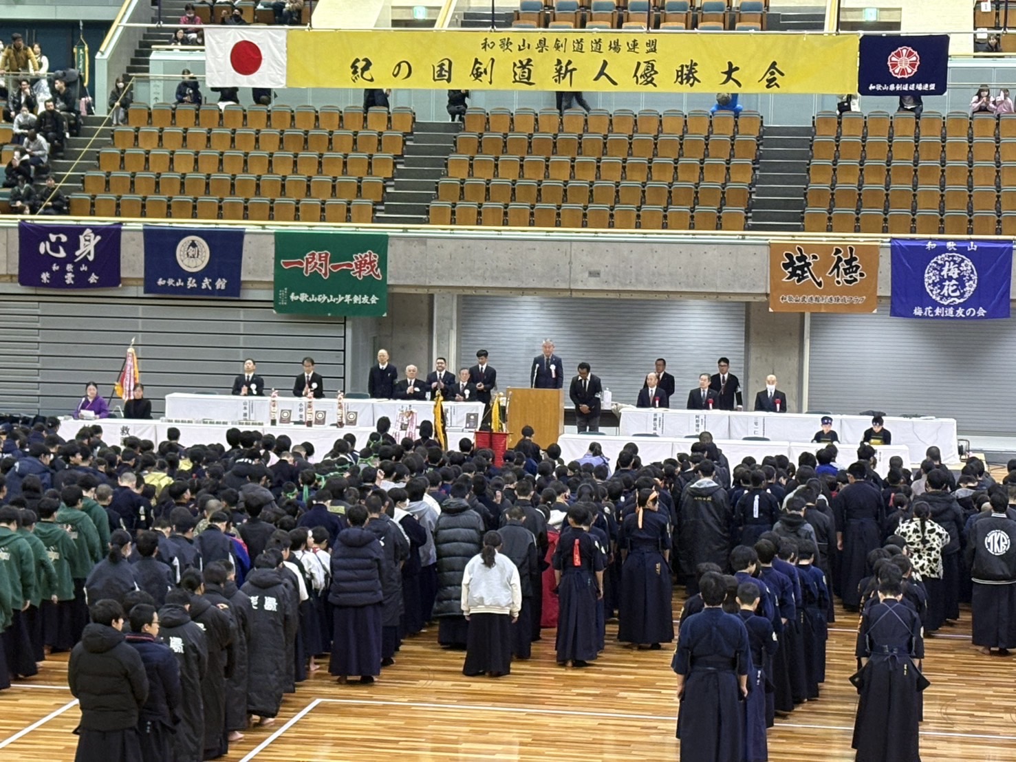 令和8年3月15日(日)、『第14回紀の国剣道新人優勝大会』が和歌山市の「和歌山ビッグホエール」にて開催され、奈良講武会から3チーム出場させていただきました。