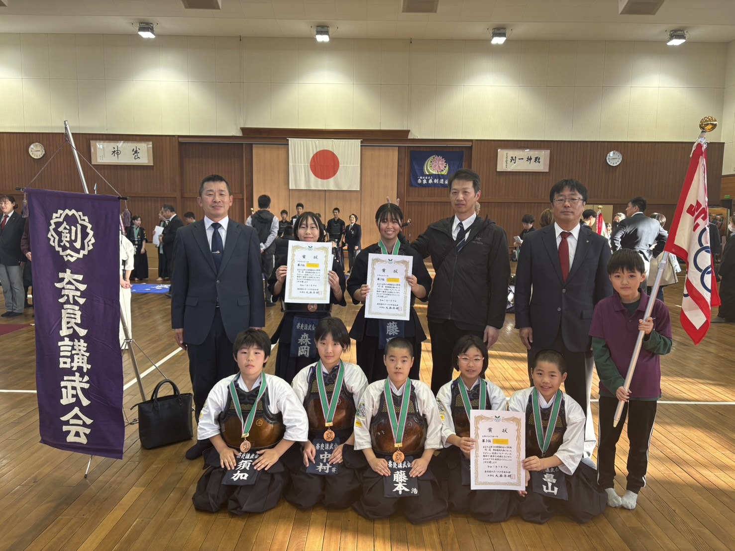 令和7年11月30日(日)、『第40回奈良県スポーツ少年団剣道親善競技大会』が「ロート奈良武道場(奈良市中央武道場)」にて開催され、奈良講武会から小・中学生が出場させていただきました。また、過日開催されました同奈良市大会において「奈良市」チームに選抜されました梅尾佳奈は市町村対抗(団体戦)にも出場させていただきました。