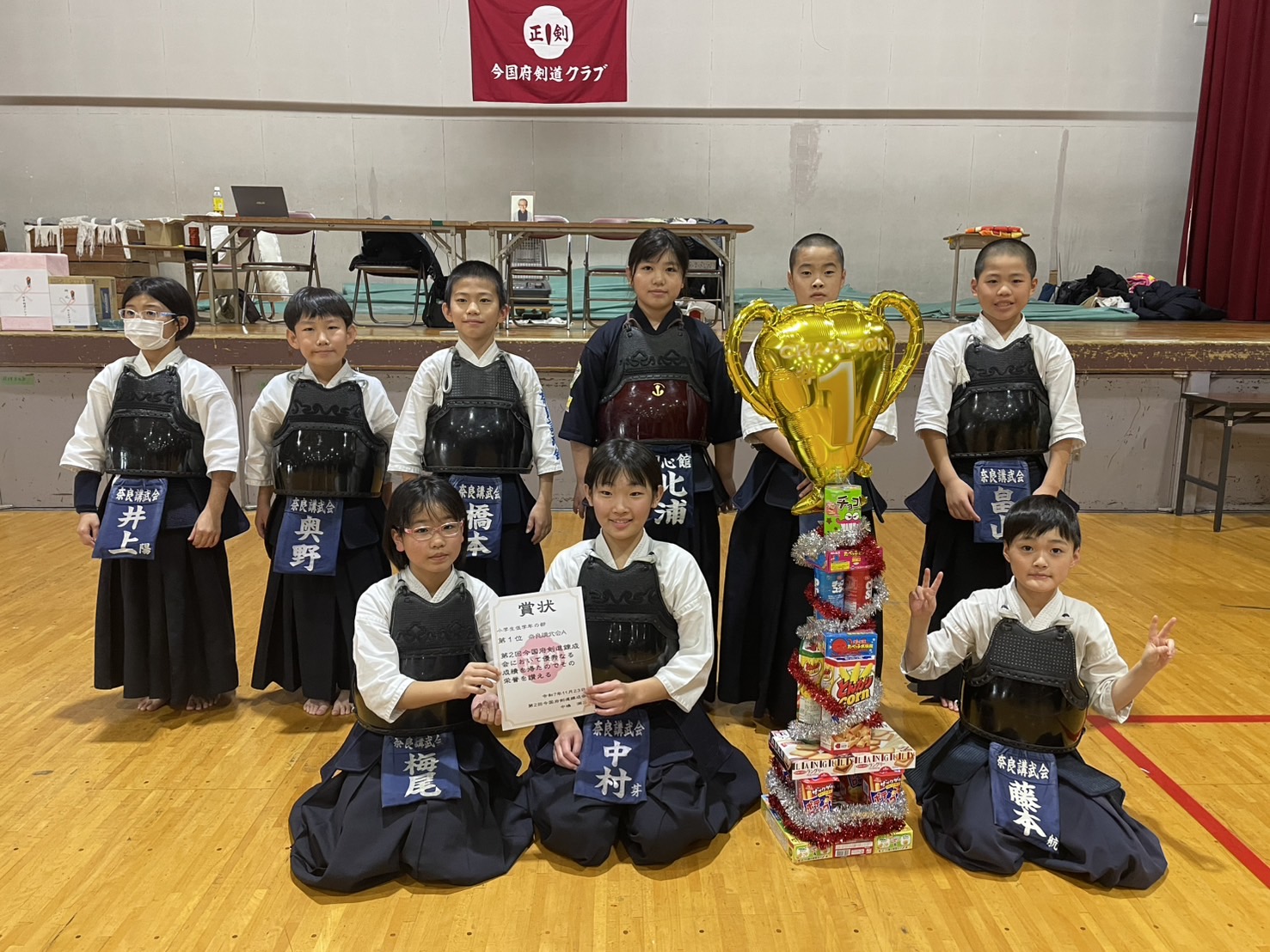 令和7年11月23日(日)、『第2回今国府剣道錬成大会』が開催され、奈良講武会から小学生8名が出場させていただきました。